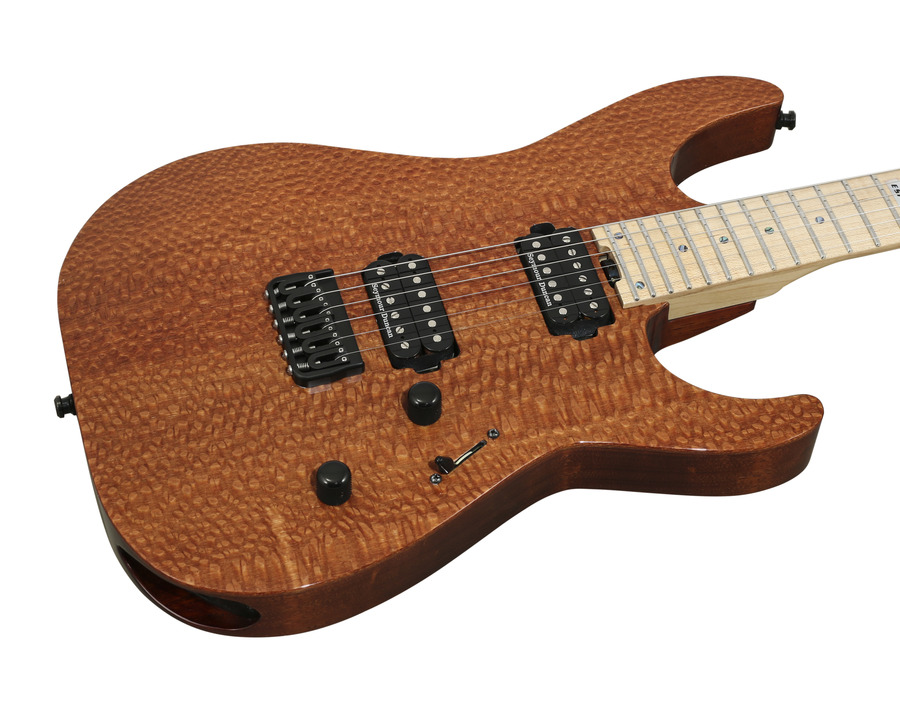 Combined with its high-end components — Floyd Rose Original bridge, Schaller straplocks and Sperzel locking tuners — the USA M-II NTB is one of the most high-performance guitars available today. It sports an alder body with a flamed maple top, bolt-on roasted maple neck, 25.5" scale and 24 extra-jumbo frets on an ebony fingerboard on a thin-U neck. It offers a mahogany body with bolt-on construction to its extra thin U-shaped three-piece maple neck with natural satin finish for the smoothest and fastest playing experience.