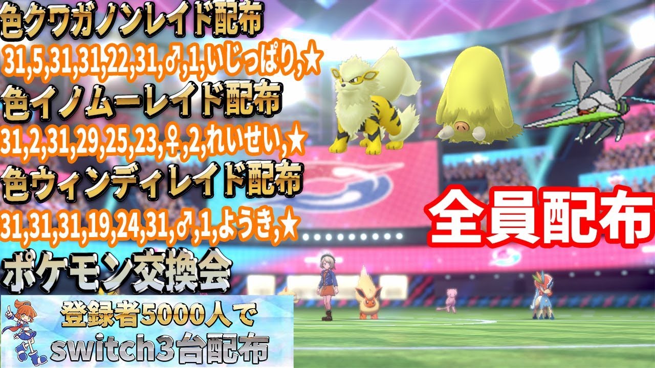 ポケモン剣盾 色違いイノムー 色違いウィンディ 色違いクワガノン 配布 色違い レイド配布 交換会 毎日24時間 5 10 午後 Pokemon Raid Shin 156 Youtube