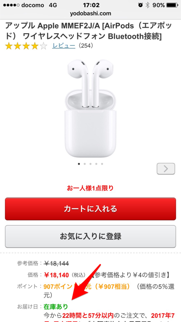 ヨドバシ Comで Airpodsが在庫ありとなっていたので 注文しました Pleasure
